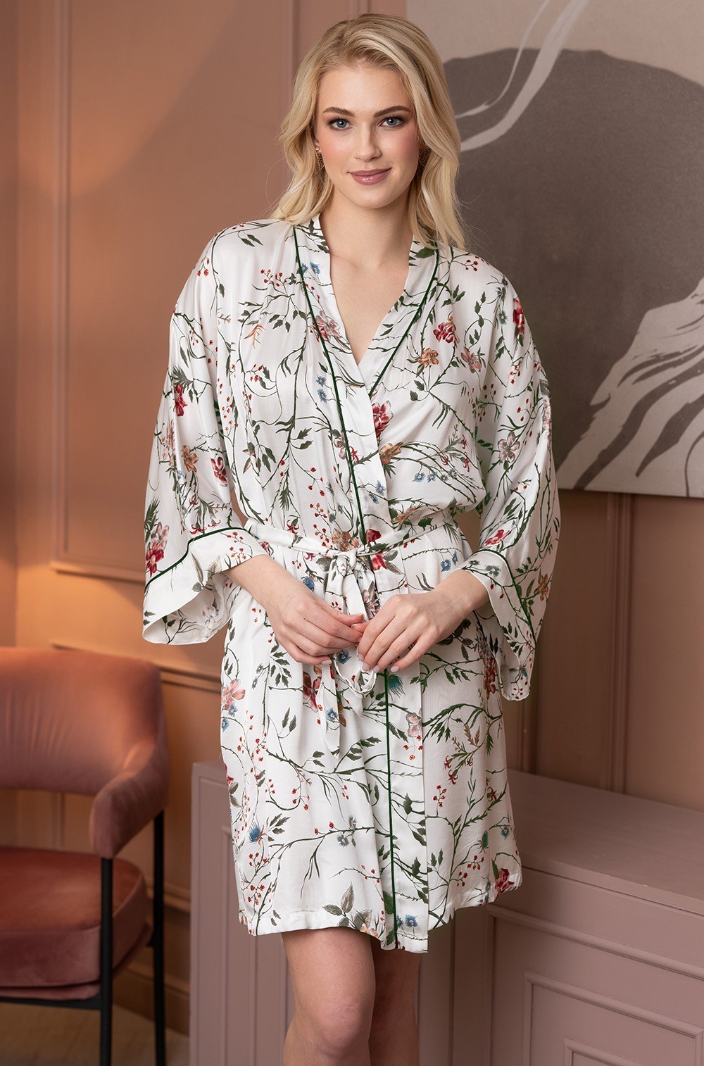Халат домашний из шёлка с вискозой короткий запашной Мелоди 3933 Mia-Amore имеется в размерах: S. M. L. XL. 2XL. 3XL. Российский размер от 44 до 56!