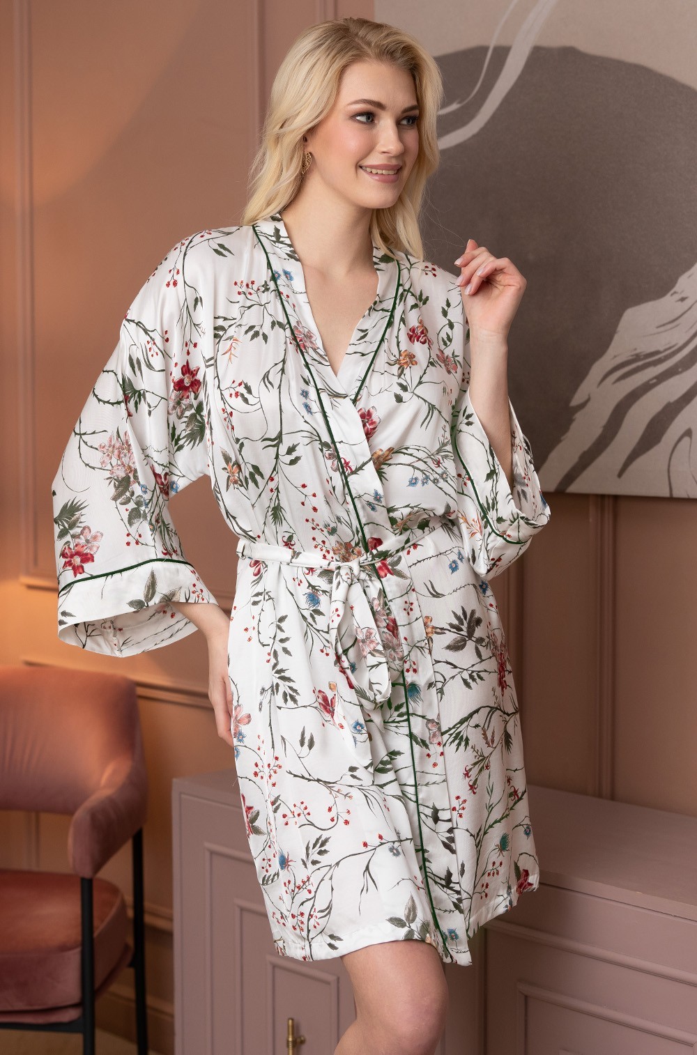 Тип Халат короткий Цвет Белый Модель Халат с рукавом 3/4 Материал Смесовый шёлк