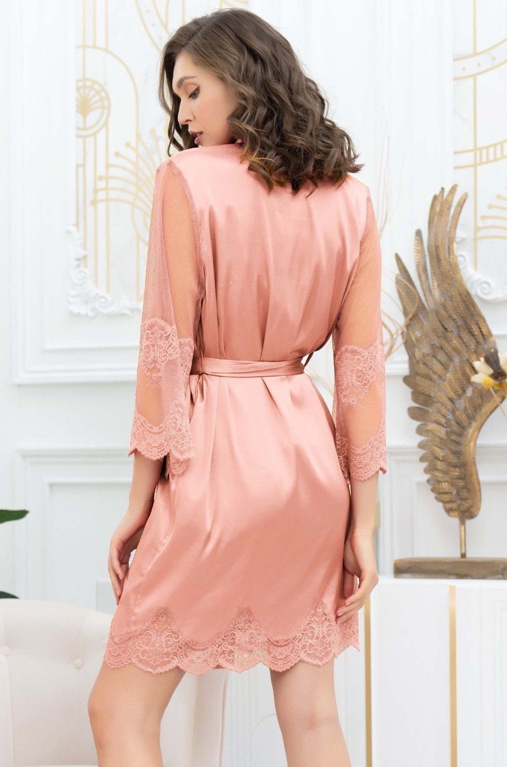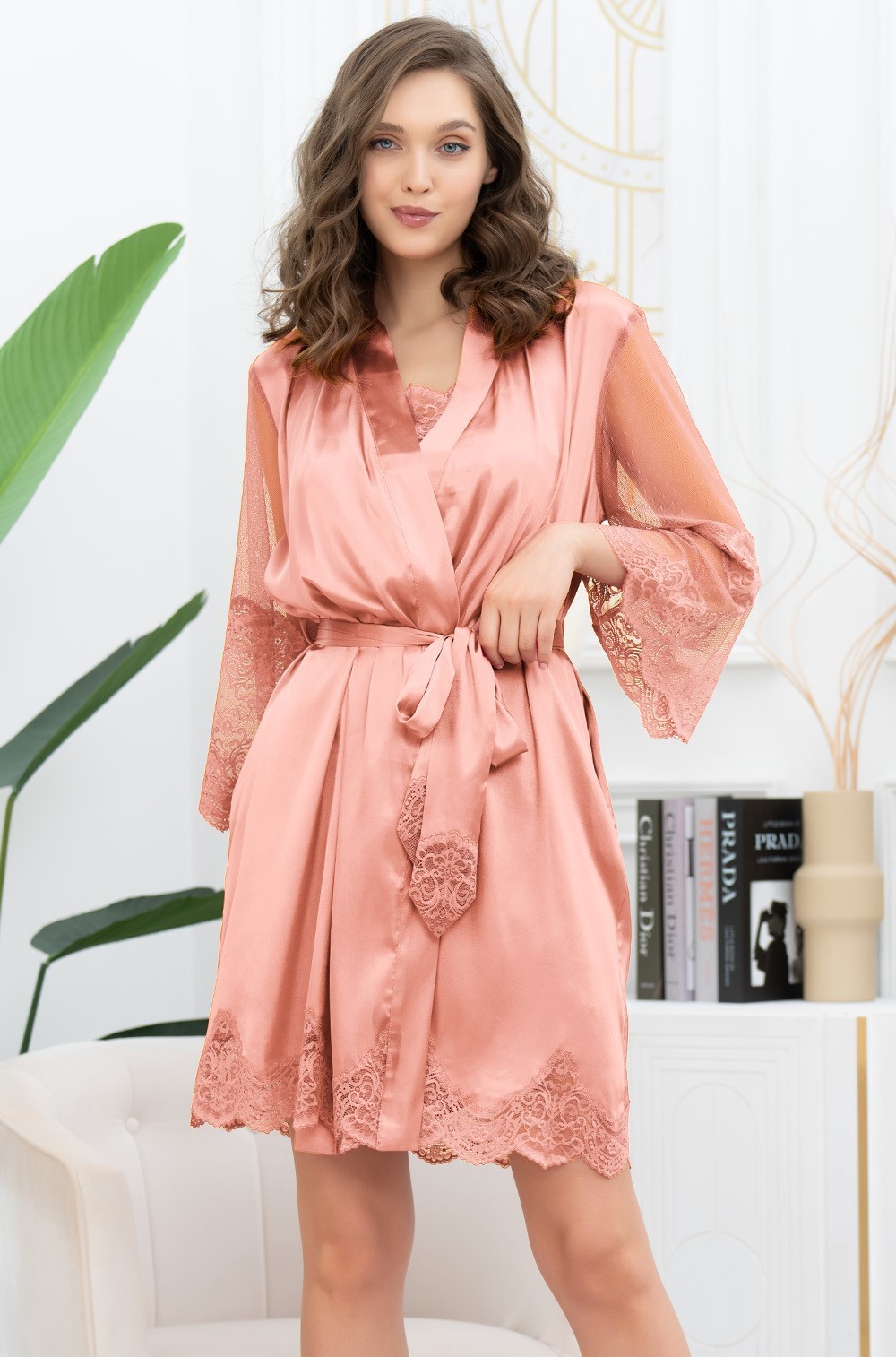 Тип Халат короткий Цвет Розовый Модель Халат с длинным рукавом Материал Смесовый шёлк -