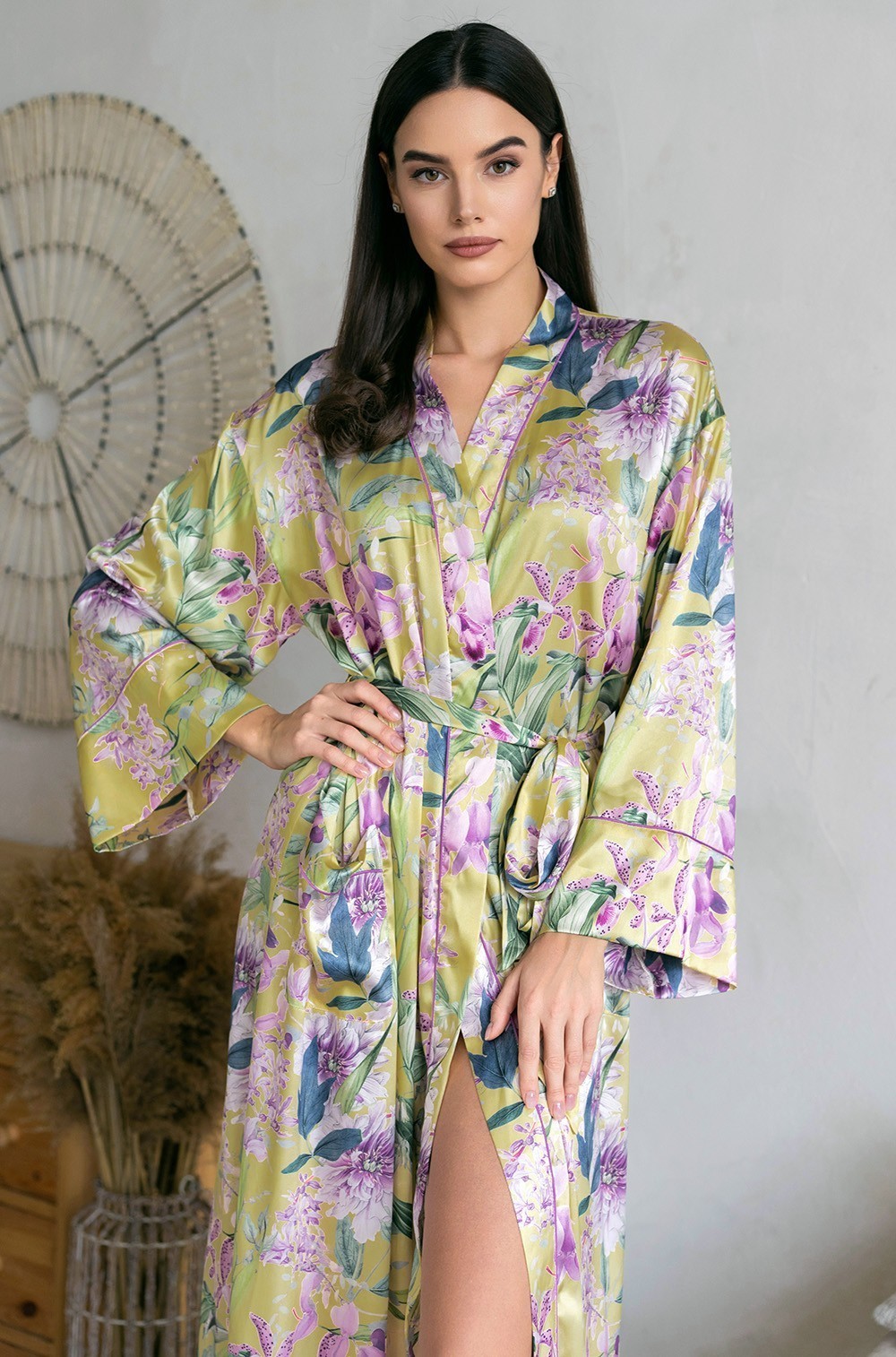 Тип Халат длинный Цвет Жёлтый Модель Халат с рукавом 3/4 Материал Смесовый шёлк