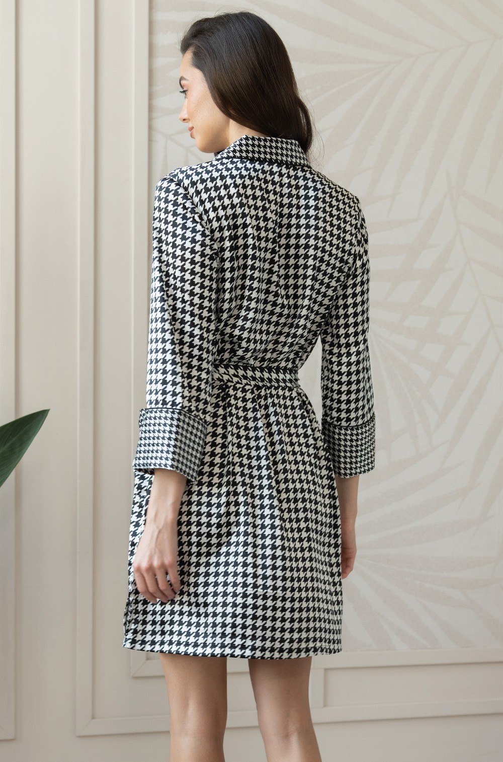 Короткий халат Mia-Amore на пуговицах с рукавом длиной 7/8. Халат выполнен из смесового шелка. В изделии используются два вида масштаба одного принта, граница которых разделена контрастным кантом. По бокам расположены накладные карманы. Линию талии можно подчеркнуть за счет пояса, который идет в комплекте. Легкая, дышащая ночная сорочка женская приятна к телу. Лёгкий халатик не ощущается на теле и дарит полную свободу действий. Сексуальное элегантное белье- это оригинальный подарок на любой случай. Шелковый домашний халат на каждый день станет поводом для отличного настроения. Широкий размерный ряд от S (44) до 5XL(58-60) позволяет выбрать модель на любую фигуру: полную и стройную, а также на любой рост: высокий и невысокий.
