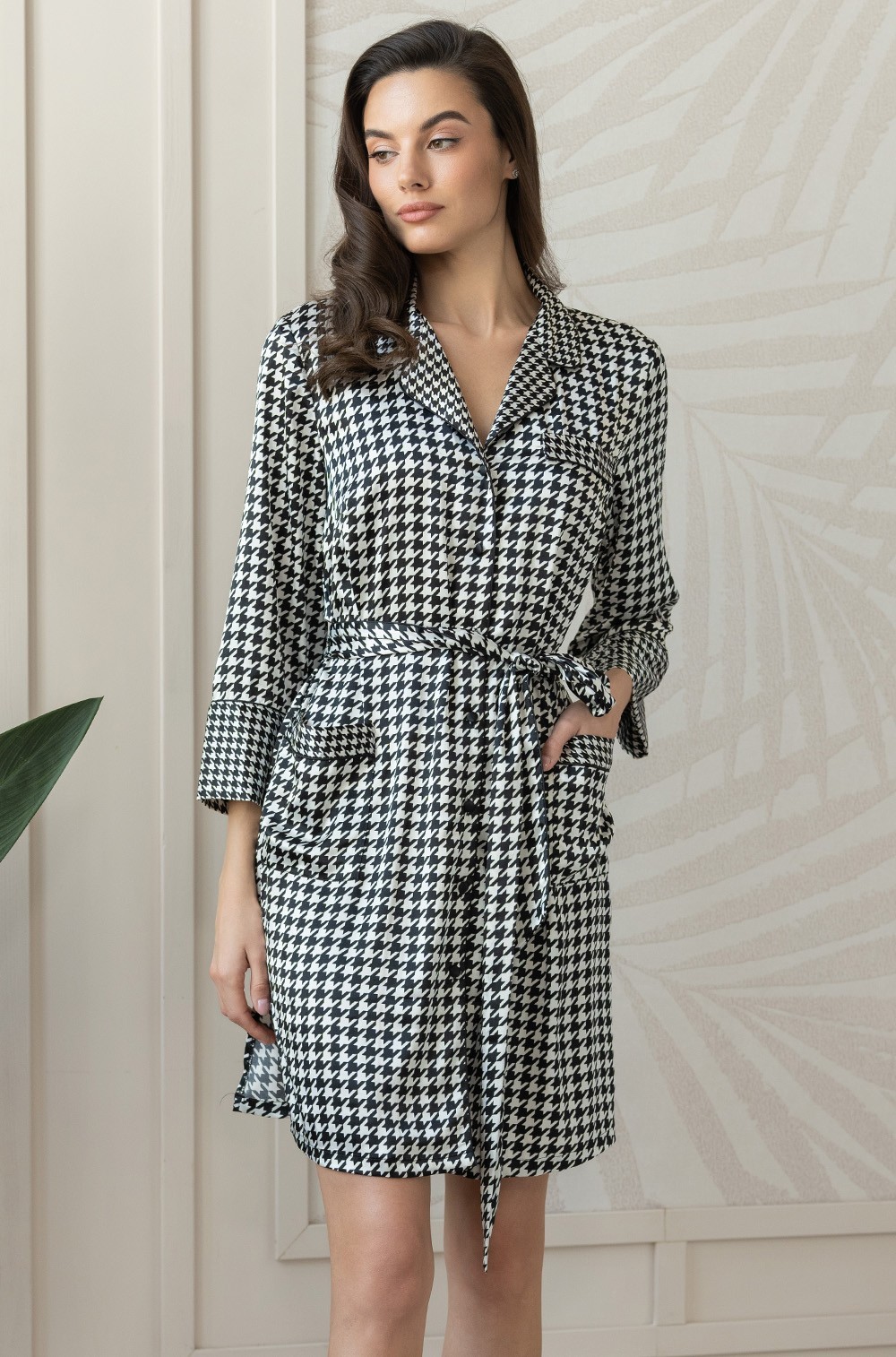 Шёлковый короткий халат на пуговицах Джулианна 3977 Mia-Amore имеется в размерах: XS. S. M. L. XL. 2XL. 3XL.4XL.