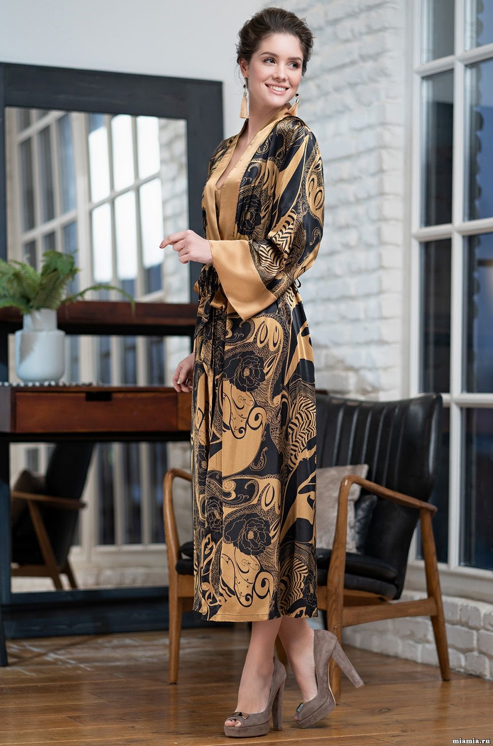 Тип Халат длинный Цвет Черный Модель Халат с длинным рукавом Материал Смесовый шёлк -