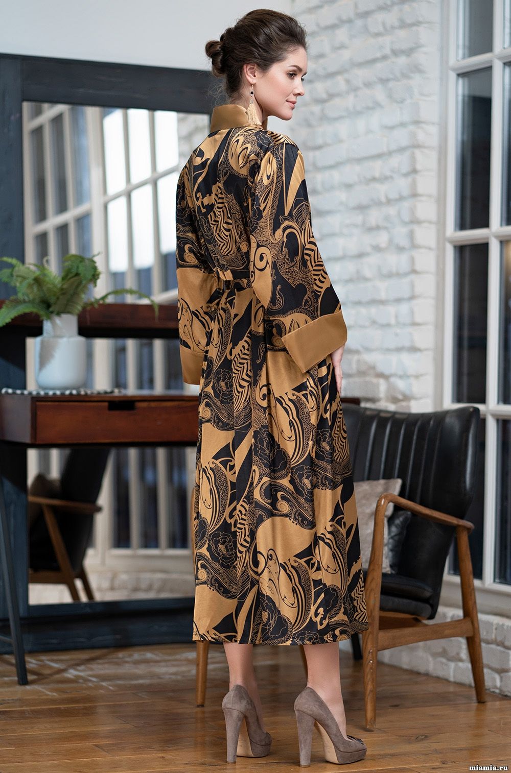 Шёлковый халат домашний длинный большие размеры Антика 3479 Mia-Amore имеется в размерах: S/M. L/XL. 2XL/3XL. 4XL/5XL.