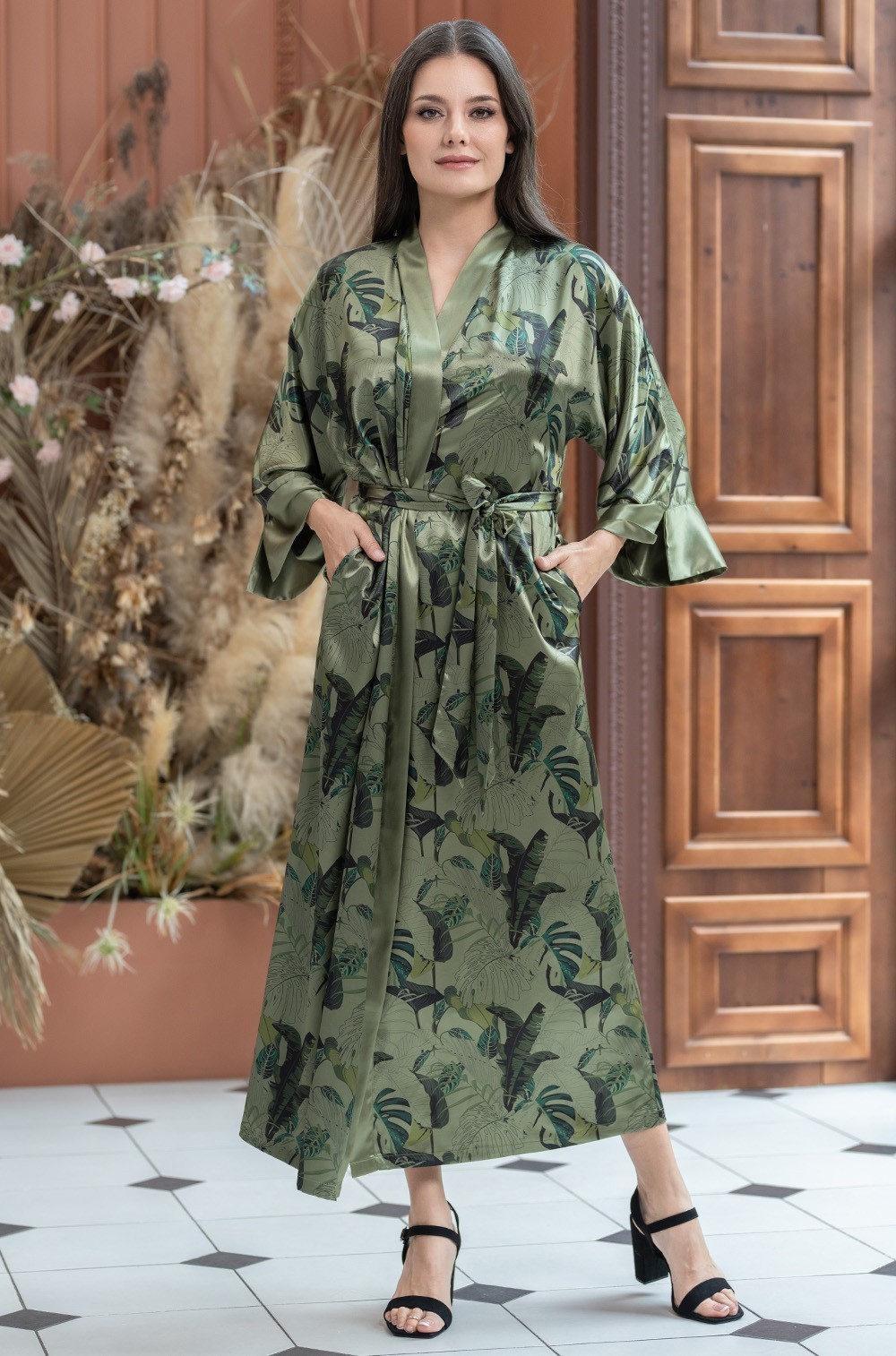 Тип Халат длинный Цвет Зелёный Модель Халат с рукавом 3/4 Материал Смесовый шёлк -