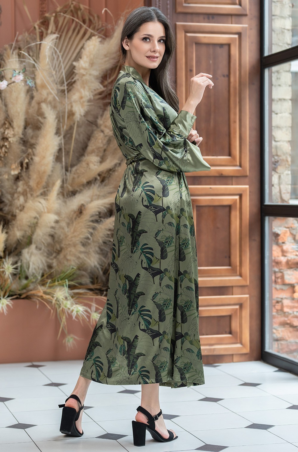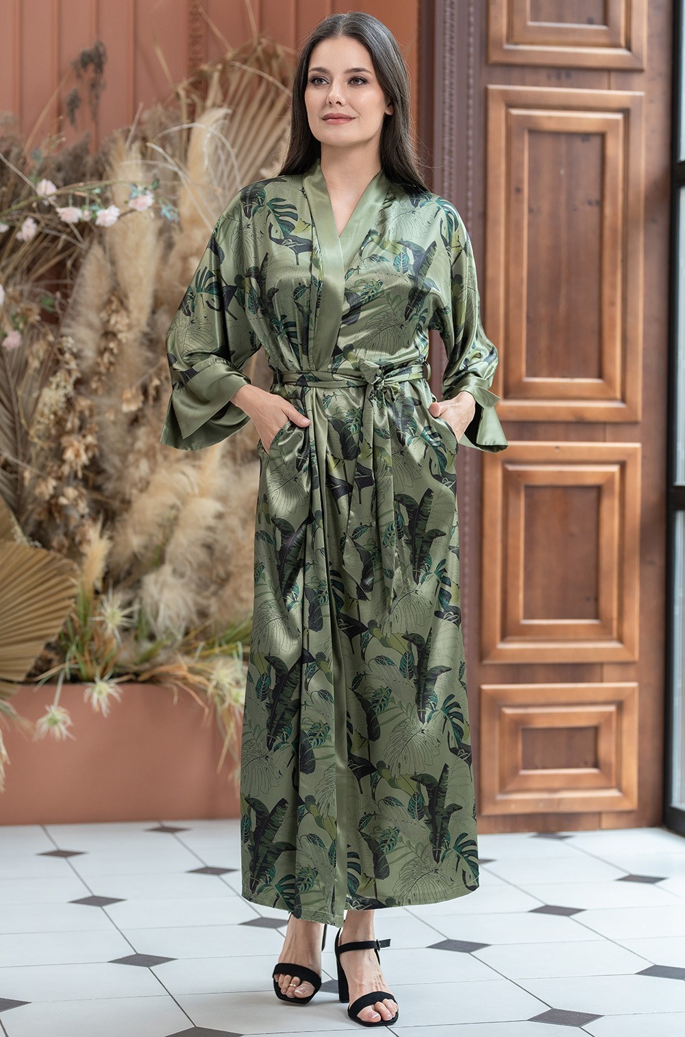 Тип Халат длинный Цвет Зелёный Модель Халат с рукавом 3/4 Материал Смесовый шёлк -