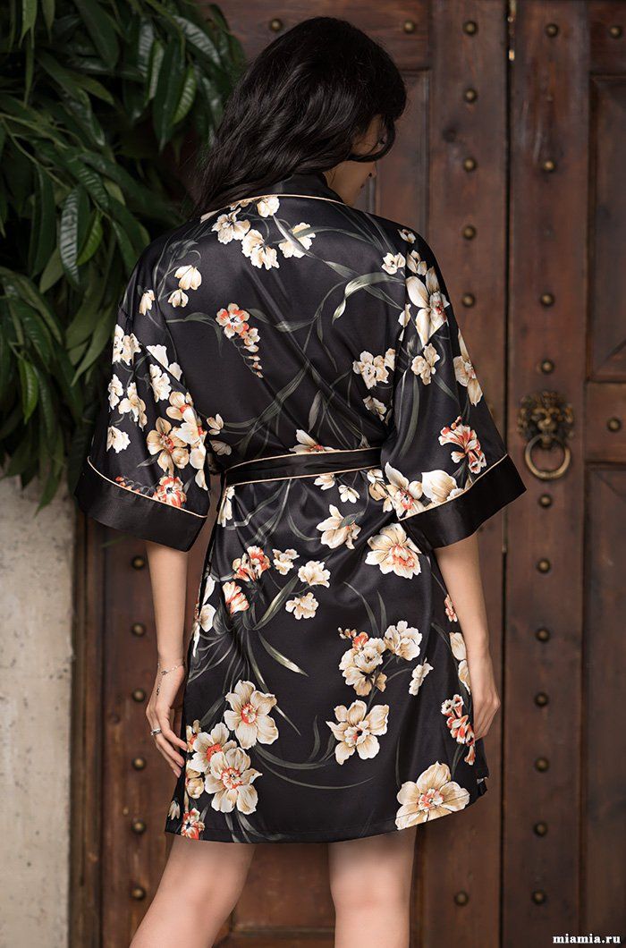 Тип Халат короткий Цвет Черный Модель Халат с рукавом 3/4 Материал Смесовый шёлк -