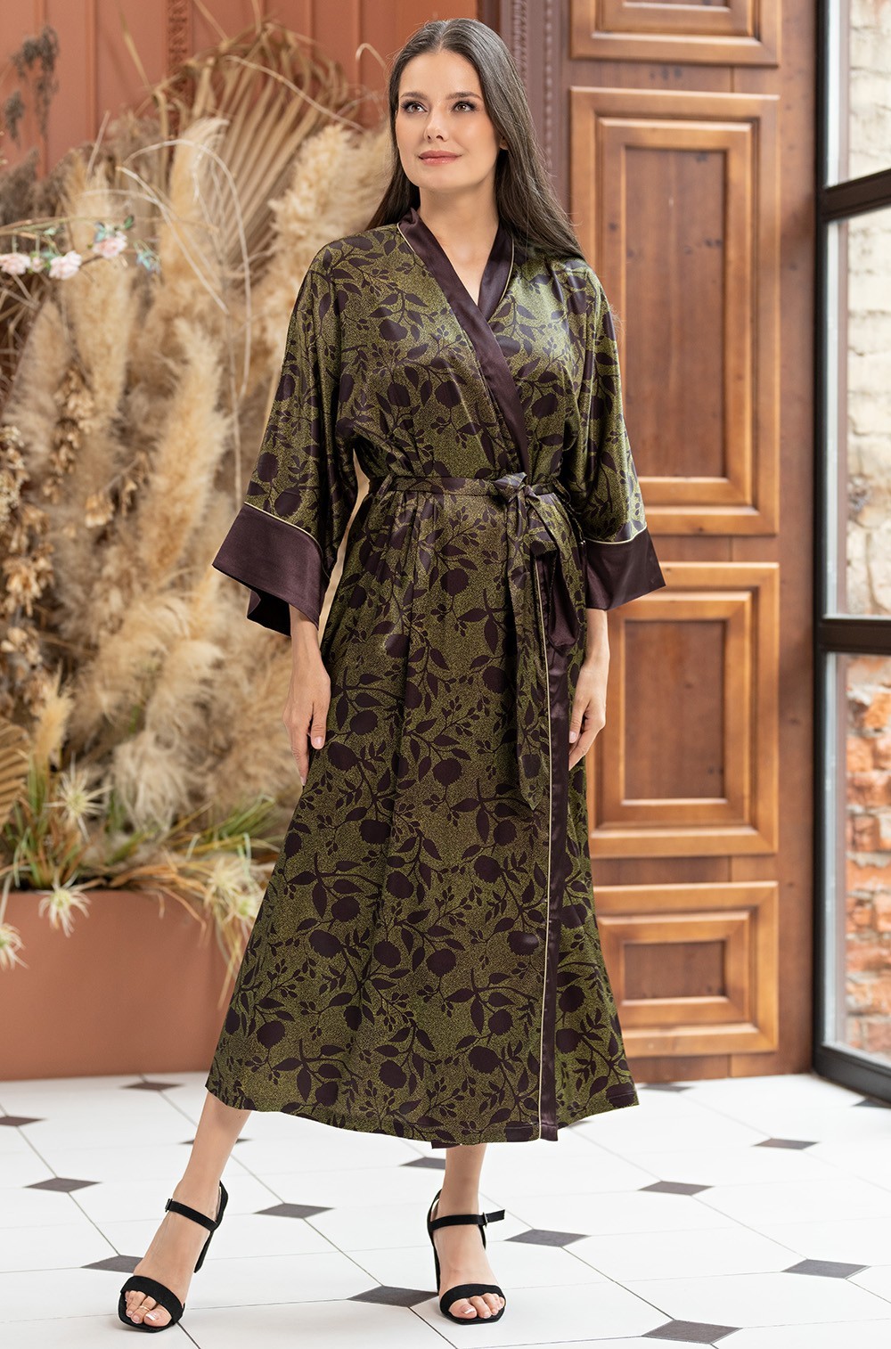 Длинный шёлковый халат-кимоно с широким рукавом Электра 4019 Mia-Amore имеется в размерах: L/XL. 2XL/3XL.4XL/5XL.