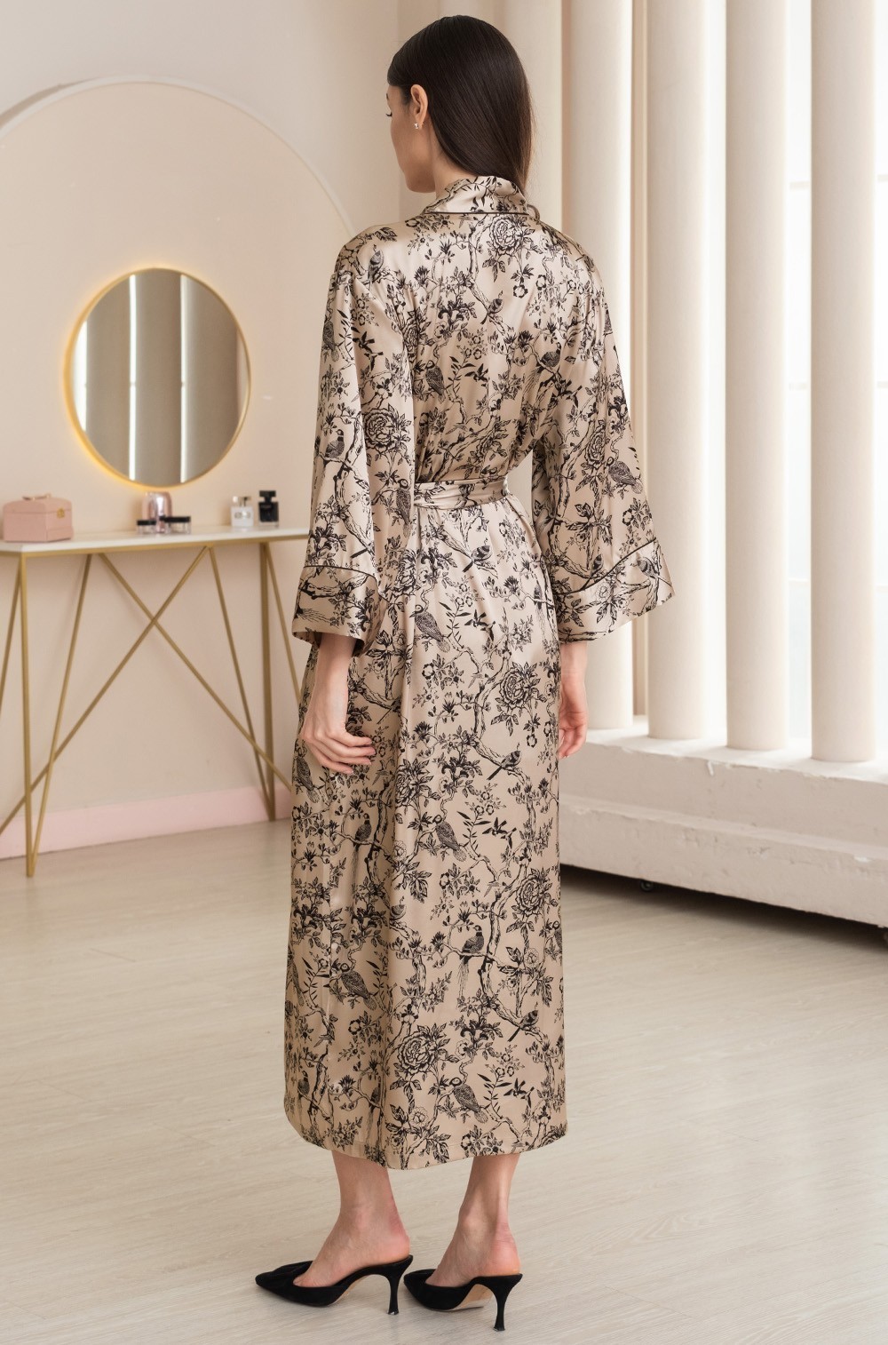 Тип Халат длинный Цвет Бежевый Модель Халат с длинным рукавом Материал Смесовый шёлк -