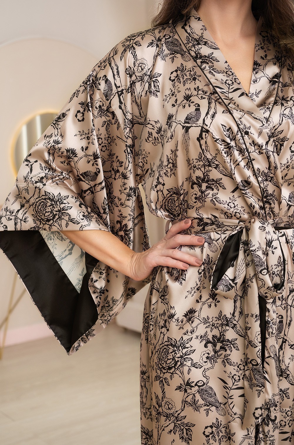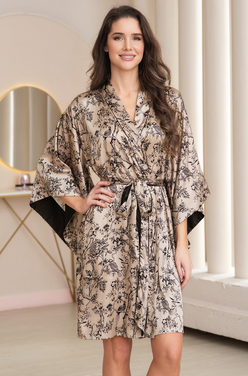 Тип Халат короткий Цвет Бежевый Модель Халат с длинным рукавом Материал Смесовый шёлк -