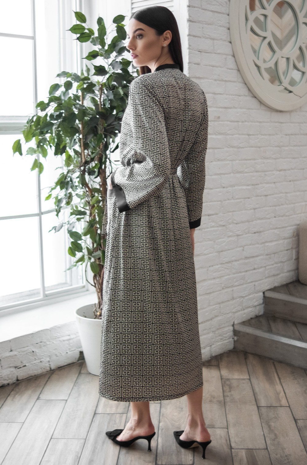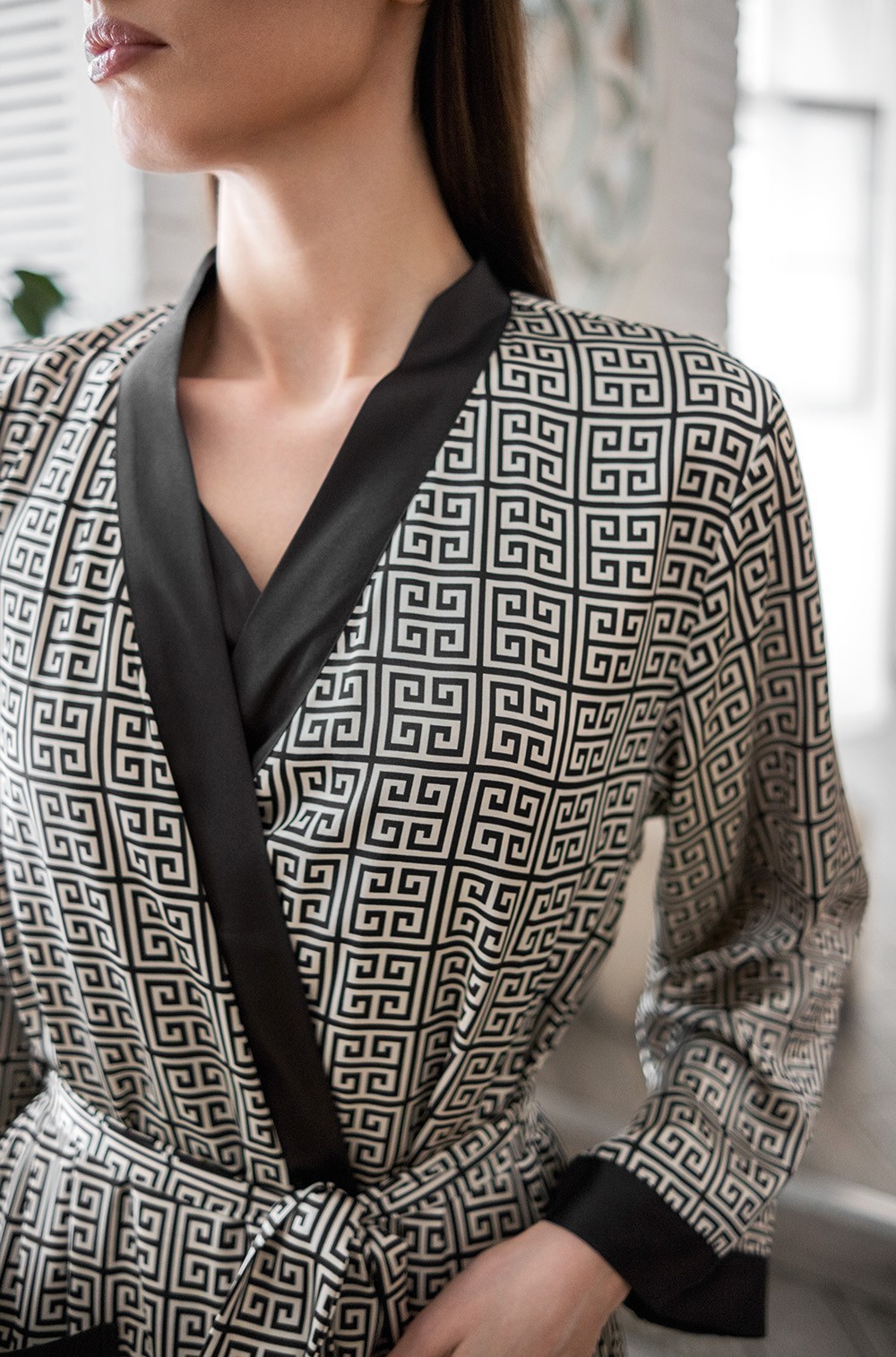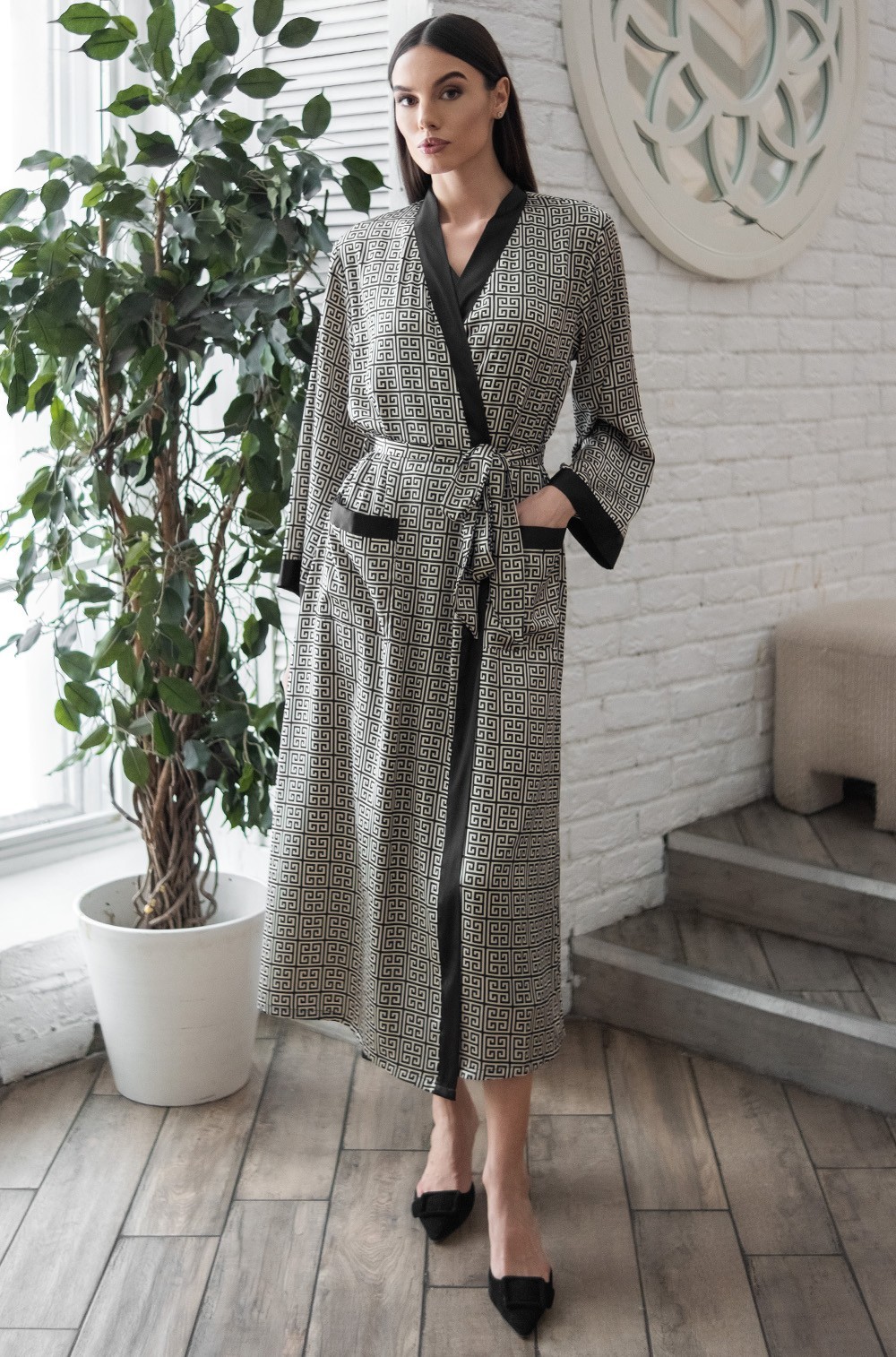 Тип Халат длинный Цвет Черный Модель Халат с рукавом 3/4 Материал Смесовый шёлк -
