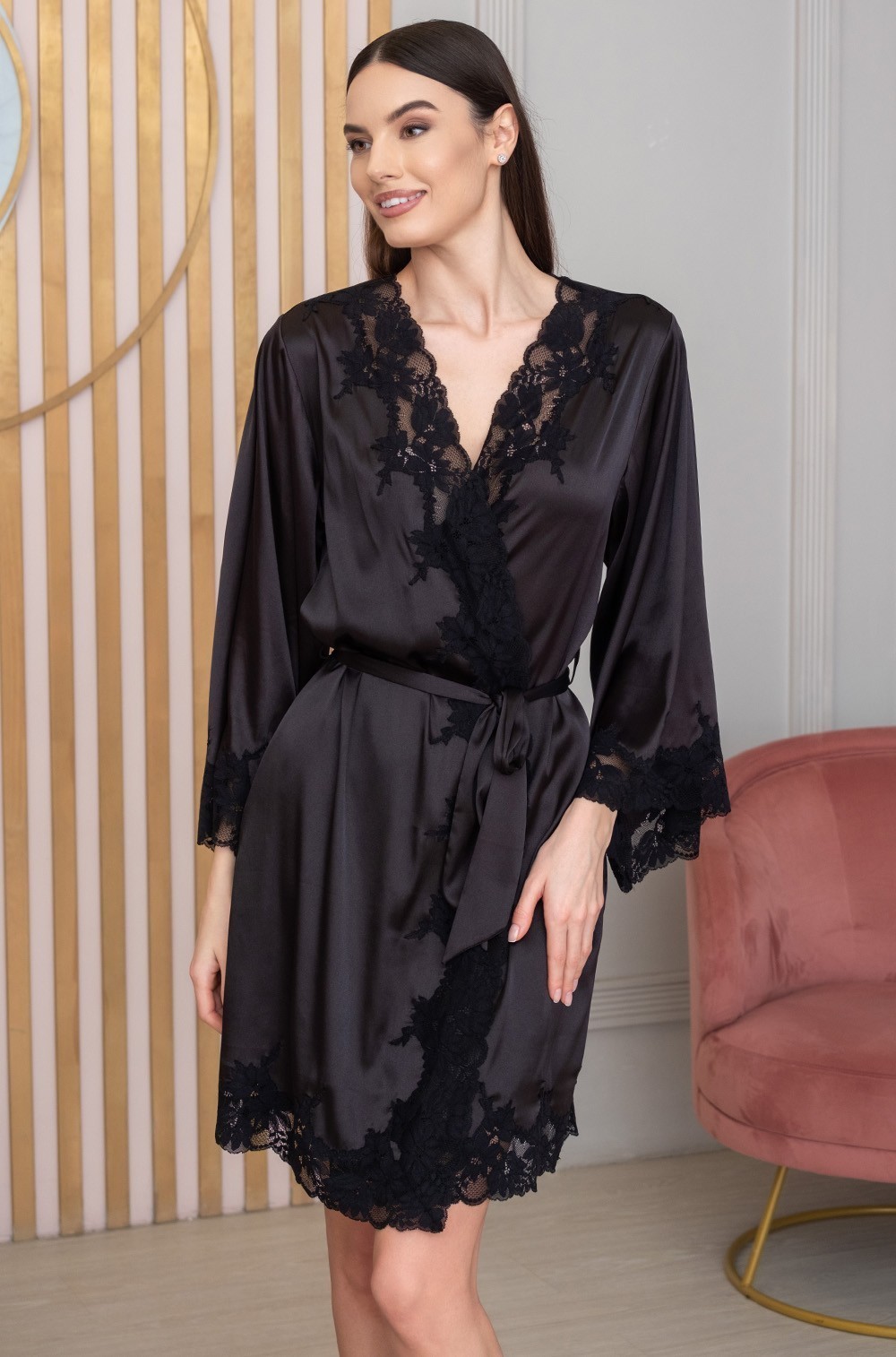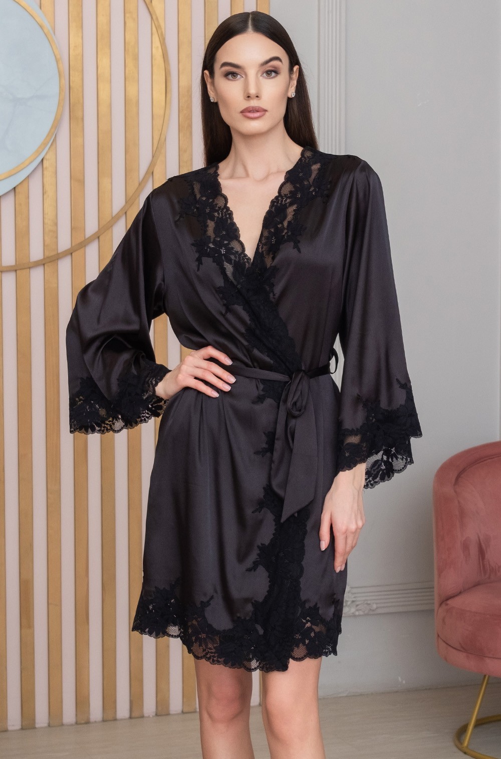 Adelina 4173: роскошный короткий запашной халат Mia-Amore