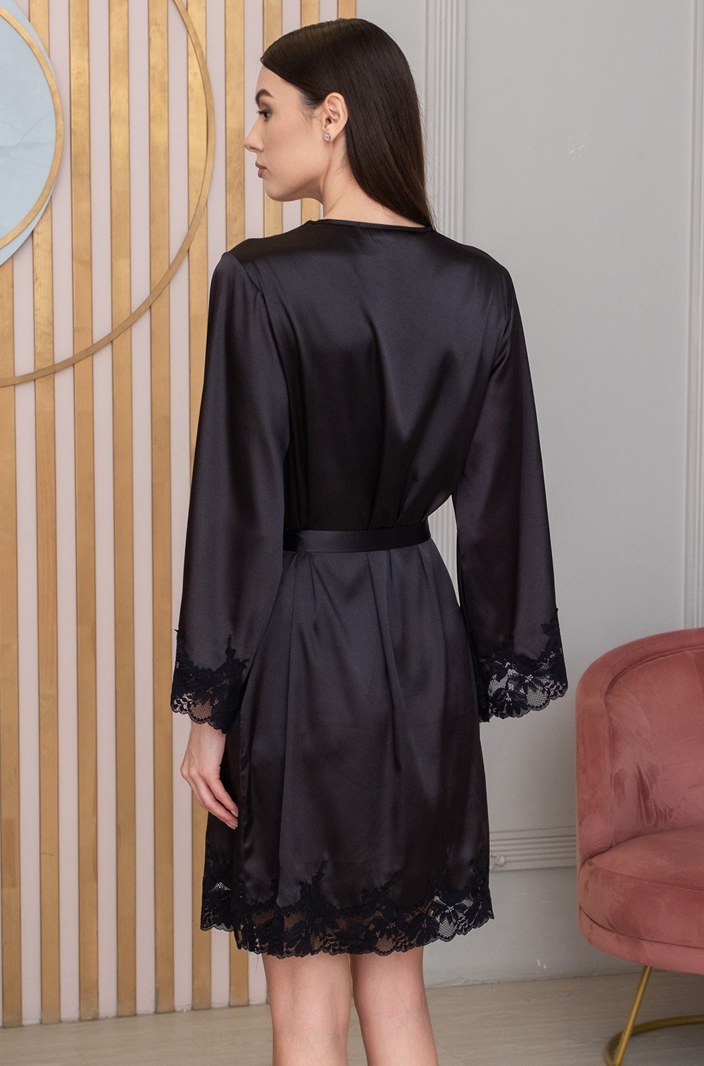 Тип Халат короткий Цвет Черный Модель Халат с длинным рукавом Материал Смесовый шёлк