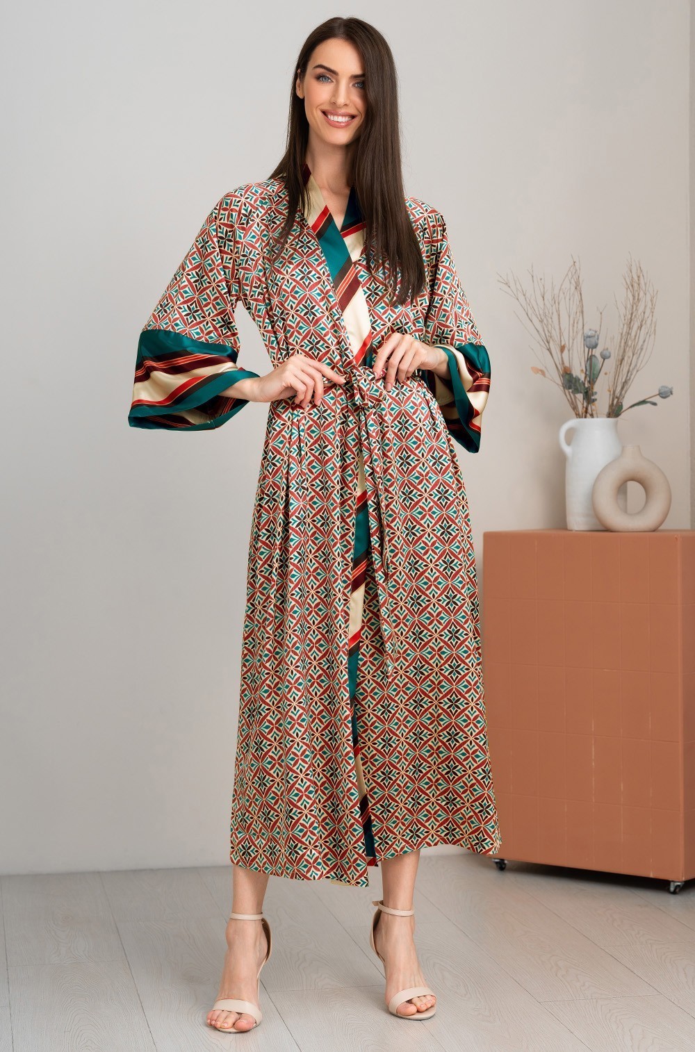 Тип Халат длинный Цвет Зелёный Модель Халат с рукавом 3/4 Материал Смесовый шёлк