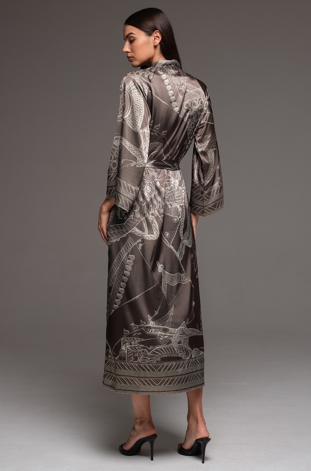 Тип Халат длинный Цвет Коричневый Модель Халат с длинным рукавом Материал Смесовый шёлк