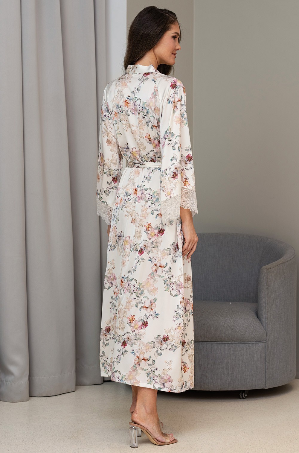Погрузитесь в атмосферу роскоши и элегантности с длинным классическим запашным халатом Eden 5179 от Mia-Amore. Этот изысканный халат выполнен из принтованного смесового шёлка на матовой основе, что придаёт ему неповторимый блеск и утончённость.Изящно длинные рукава 7/8 украшены ажурным кружевом, которое добавляет халату воздушности и лёгкости. По бокам расположены удобные карманы, что делает халат не только красивым, но и практичным.