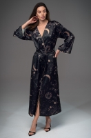 Galateya 4469. Длинный запашной халат Mia-Amore выполнен из принтованного смесового шёлка, что обеспечивает комфорт и роскошь в каждой детали. Этот халат идеально подходит для создания уютного и элегантного образа для дома. Широкие манжеты халата и планка отделаны изящным золотым кантом, придающим изделию утончённый и изысканный вид. Халат запахивается на широкий пояс, что позволяет регулировать его и обеспечивает удобство в носке. В боковых швах халата предусмотрены удобные карманы, куда можно положить мелкие предметы.