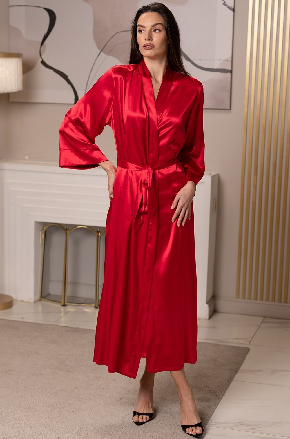 -Шёлковый красный халат длинный запашной Беатрис 4509 Mia-Amore