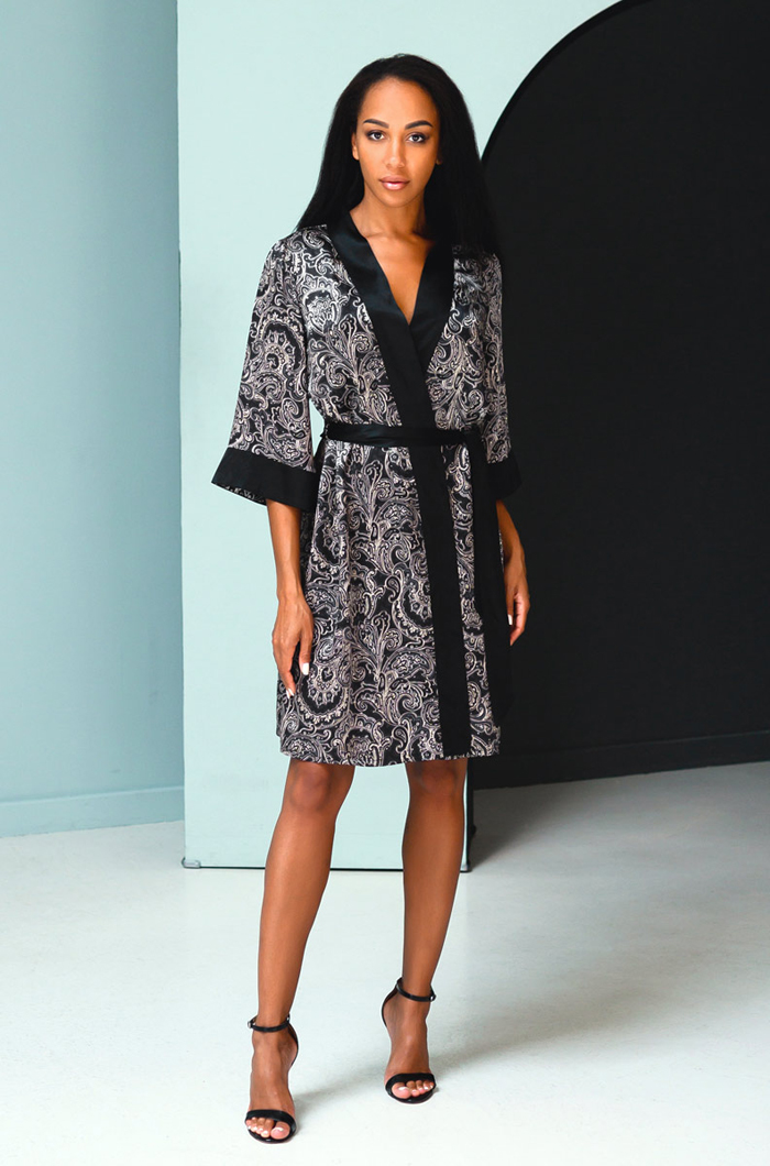 Тип Халат короткий Цвет Черный Модель Халат с рукавом 3/4 Материал Натуральный шёлк
