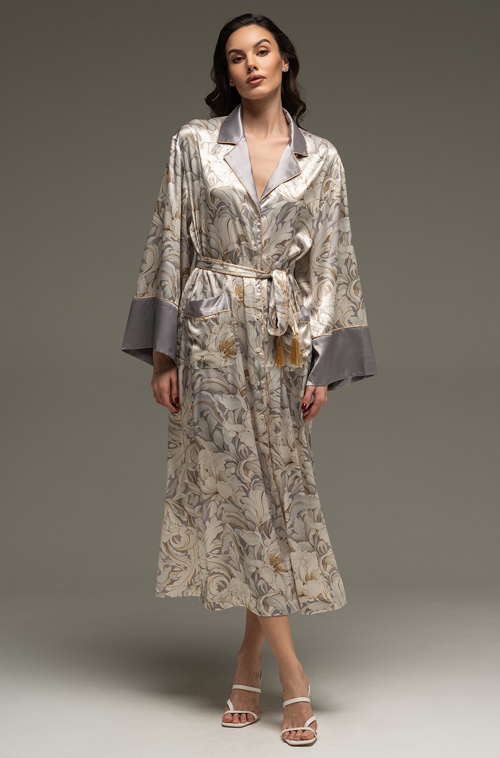 Изысканный дизайн халата поражает своей утончённостью: