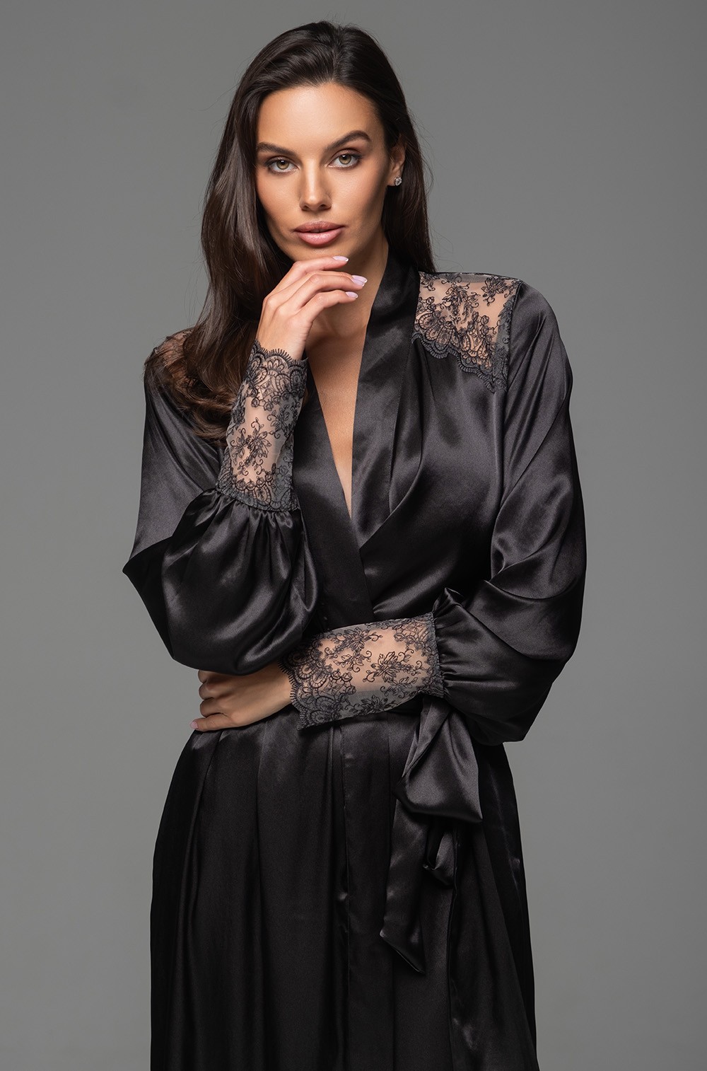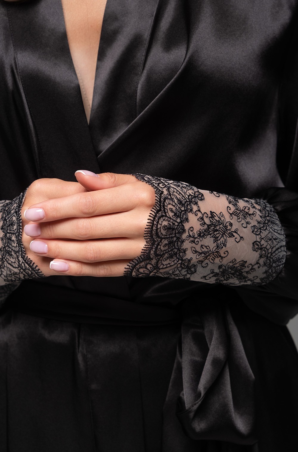 Халат отличается превосходными тактильными свойствами благодаря использованию натурального шёлка. Кружевные элементы добавляют изделию изысканности и женственности.. Практичная конструкция и качественные материалы обеспечивают длительный срок службы изделия.