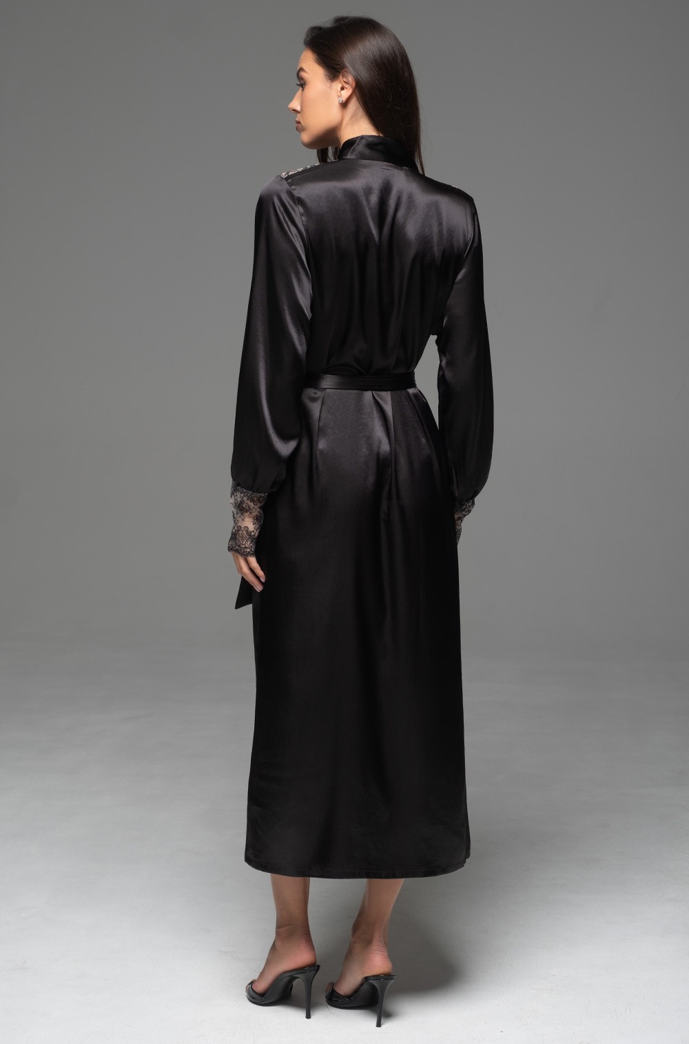 Тип Халат длинный Цвет Черный Модель Халат с длинным рукавом Материал Смесовый шёлк