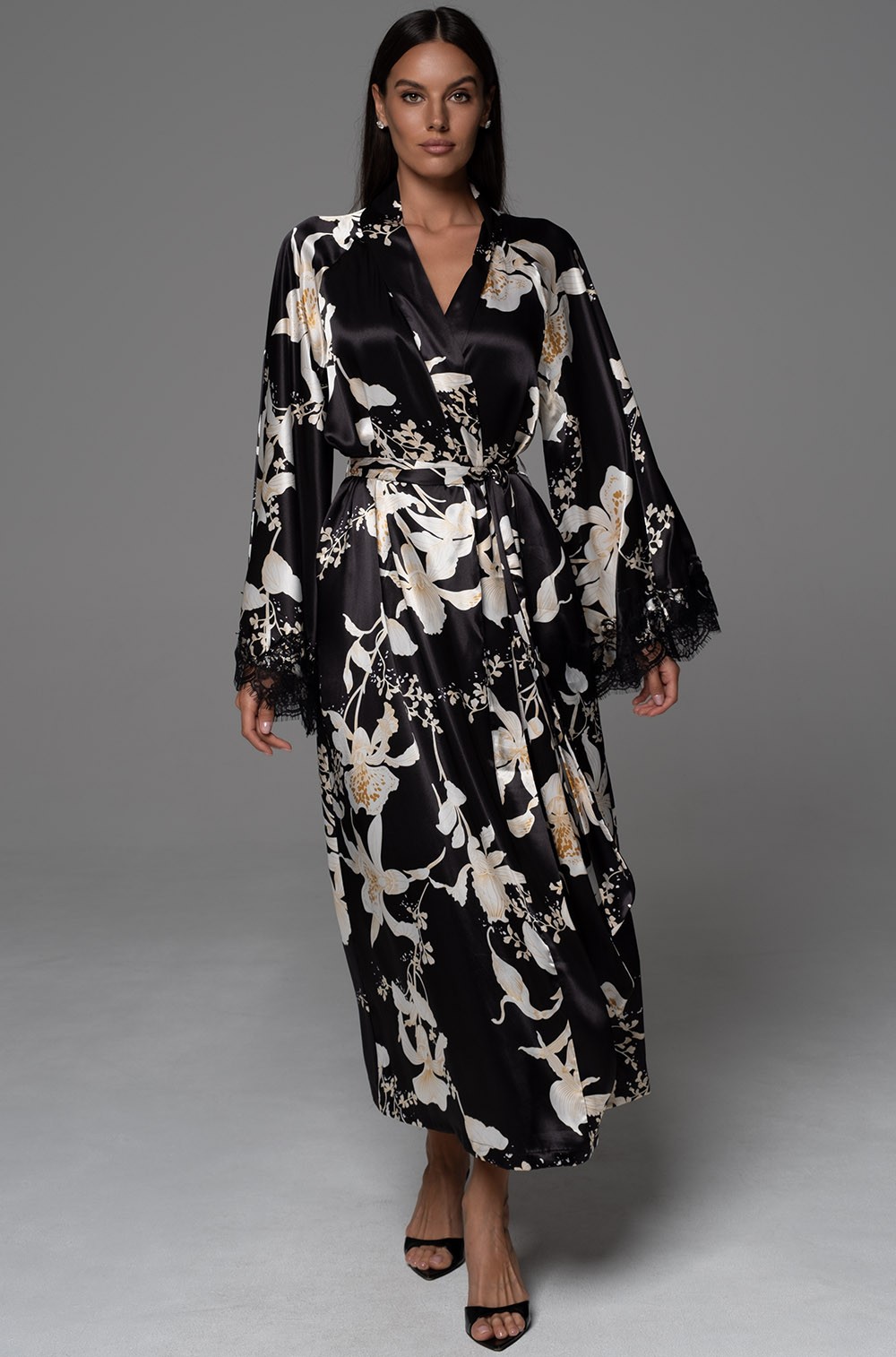 Тип Халат длинный Цвет Черный Модель Халат с длинным рукавом Материал Смесовый шёлк