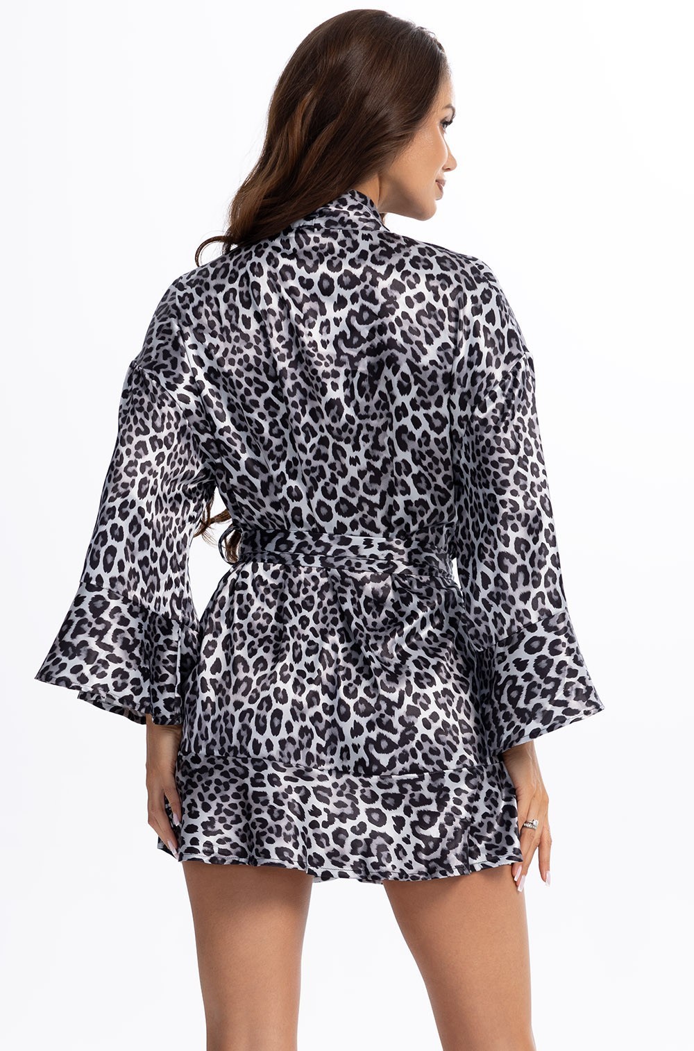 Откройте для себя очарование непринуждённой элегантности с мини‑халатом Maggie от Mia‑Amore. Эта модель — виртуозный баланс между детской непосредственностью стиля бэби‑долл и роскошью премиальной ткани. Анималистичный принт придаёт образу дерзкий шарм, а продуманные детали делают модель по‑настоящему функциональной.