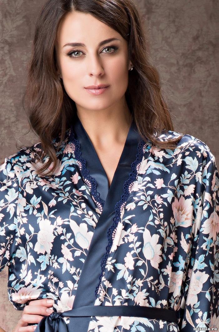 Шёлковый халат женский средней длины Эмилия 5969 Mia-Amore имеется в размерах: L/XL. 2XL/3XL