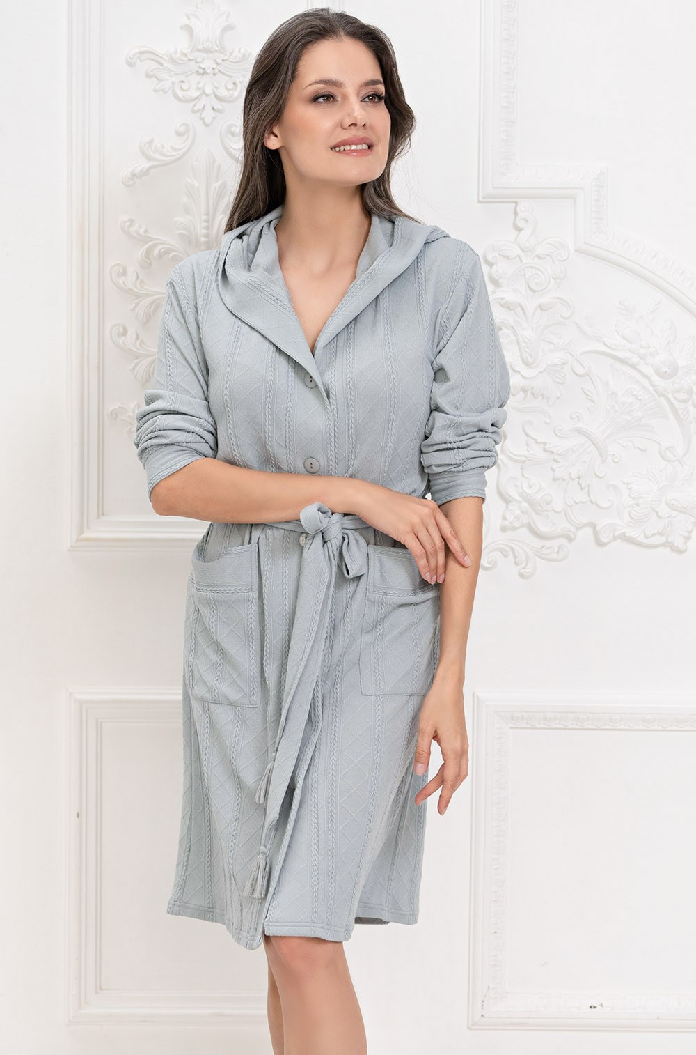 Халат на пуговицах с капюшоном c фигурной вязкой Джесси 5079 Mia-Amore имеется в размерах: S/M. L/XL. 2XL/3XL. 4XL/5XL.