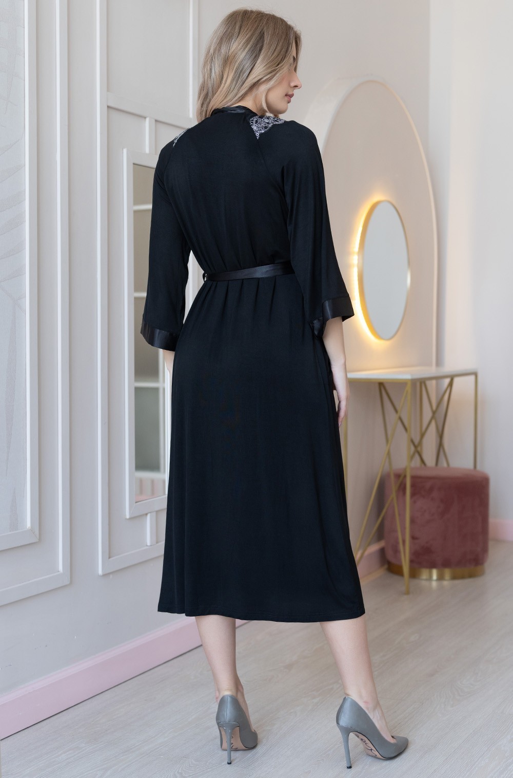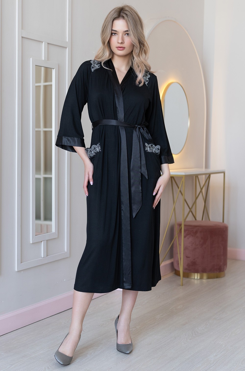 Тип Халат длинный Цвет Черный Модель Туника с рукавом 3/4 Материал Трикотаж