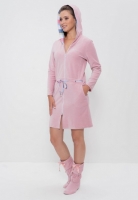 Велюровый халат женский домашний на молнии Cleo 1242 розовый имеется в размерах: 42. 44. 46. 48. 50. 52. 54.