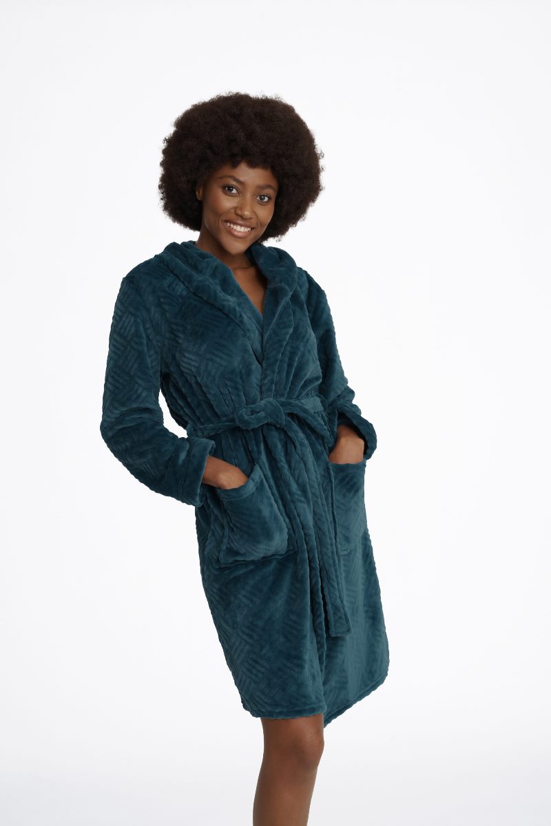 Тёплый мягкий халат с капюшоном морская волна 41161 MISS Esotiq Польша
