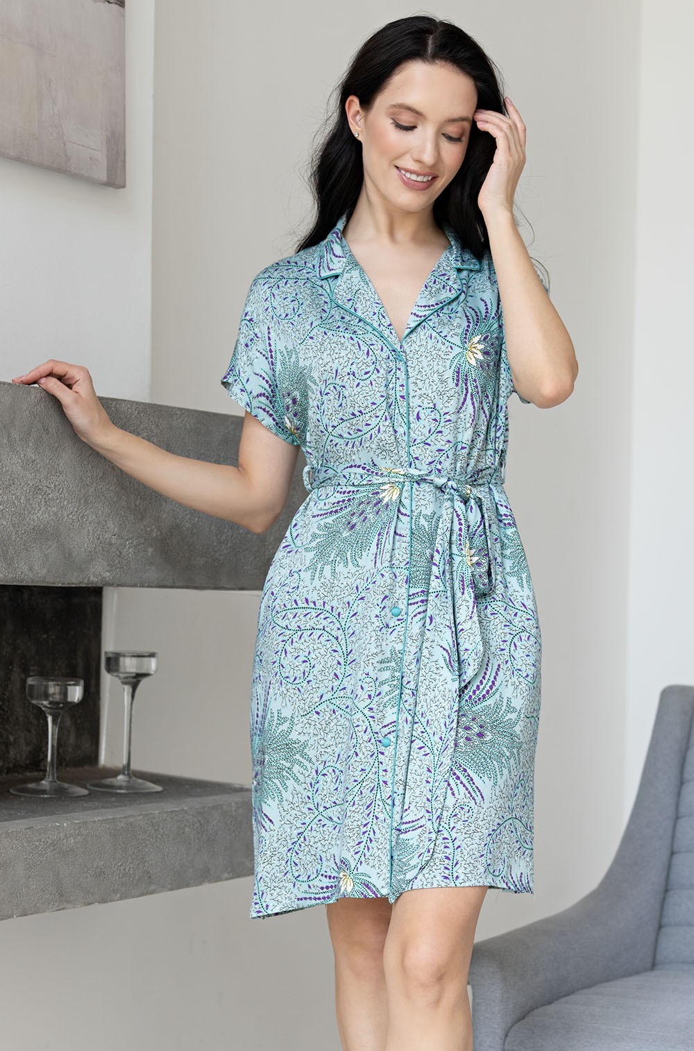 Короткая рубашка женская Mia-Amore свободного силуэта с коротким рукавом. Изделие выполнено из принтованной тканой вискозы с отделкой в виде кантов. В боковых швах обработаны карманы. По низу изделия обработаны разрезы для свободы движения. Линию талии можно подчеркнуть за счет пояса, который идет в комплекте. Женская рубашка свободного силуэта средней длины подойдёт женщинам любого роста. Рубашка с поясом женская трикотаж красиво сидит на любой фигуре, подчёркивая её достоинства. Красивая удобная домашняя рубашка прекрасно подойдет для дома, отдыха, больницы и родов. Не упустите возможность доставить радость любимому человеку. За счет своего интересного дизайна привлекает внимание и выделяет свою обладательницу на фоне остальных. Широкий размерный ряд от S 44 до 3XL(54) делает коллекцию доступной не только стройных девушек, но и обладательниц роскошных форм. Рубашки Миа-Amore очень выгодно смотрится на любой фигуре! И конечно же наши дорогие беременные, будущие мамы оценят комфорт.