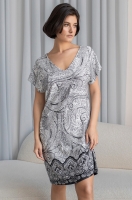 Туника Mia-Amore свободного силуэта с коротким рукавом и V-образным вырезом горловины. Изделие выполнено из принтованного в виде купона трикотажного полотна. По бокам туники расположены карманы. Туника домашняя украсит ваше утро, а также создаст романтическое настроение ночью. Туника из вискозы сядет по фигуре и изящно подчеркнет все изгибы вашего прекрасного тела. Такая трикотажная туника для девушки, женщины подойдет как для повседневной носки, так и для особого случая, отлично подойдет для будущих мам. В нем она будет выглядеть красиво и модно. У нас есть АКЦИИ и распродажи. Вы можете купить наши новинки и другие популярные товары со скидкой!