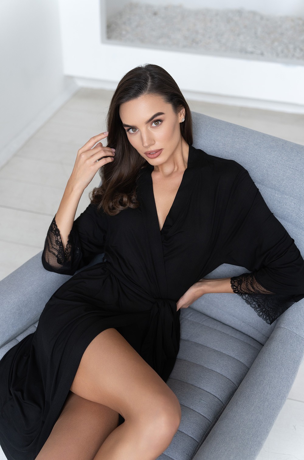 Тип Халат длинный Цвет Черный Модель Халат с коротким рукавом Материал Вискоза