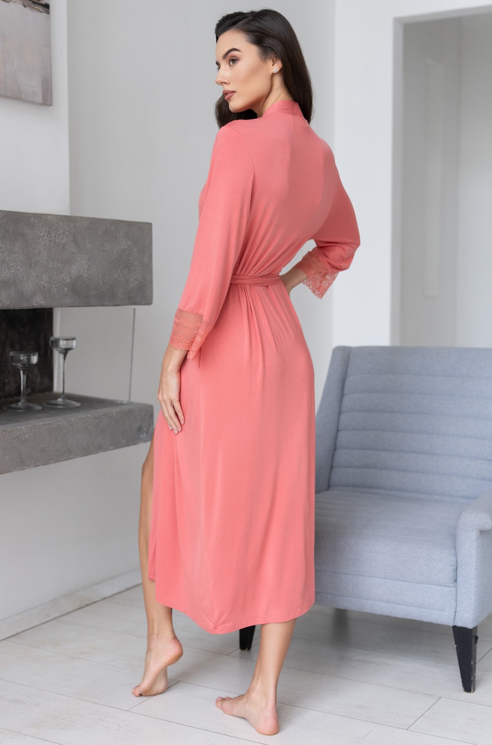 Элегантный длинный халат коралловый с кружевом вискоза Алексис 1939 Mia-Amore имеется в размерах: L/XL. 2XL/3XL. 4XL/5XL. 6XL.