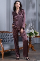 Пижама атласная жакет с брюками Джулия JULIA 8736 шоколад Mia-Amore имеется в размерах XS. S. M. L. XL. 2XL. 3XL.