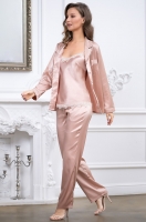 Пижама-тройка рубашка топ брюки атласная Джулия JULIA 8735 пудра Mia-Amore имеется в размерах XS. S. M. L. XL. 2XL. 3XL.