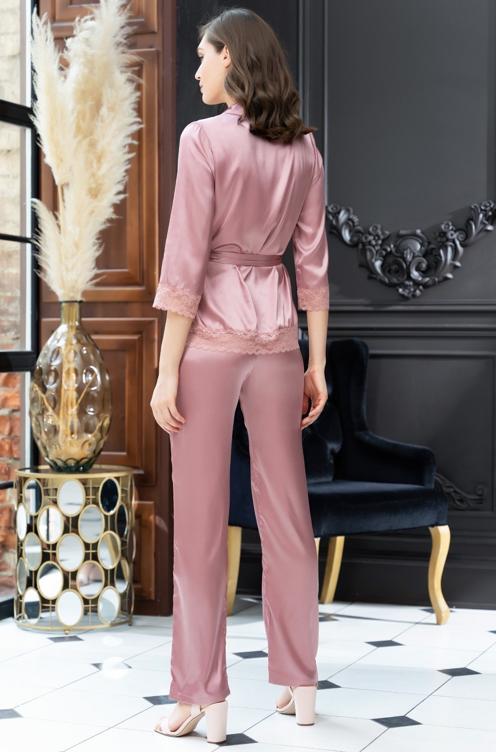 Пижама женская рубашка с брюками атласная Луиза LUIZA 7246 роза Mia-Amore имеется в размерах: XS. S. M. L. XL. XXL.