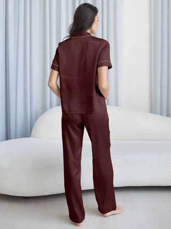Пижама-двойка рубашка и брюки атласная Джулия шоколад 8734 Mia-Amore имеется в размерах XS. S. M. L. XL. 2XL.