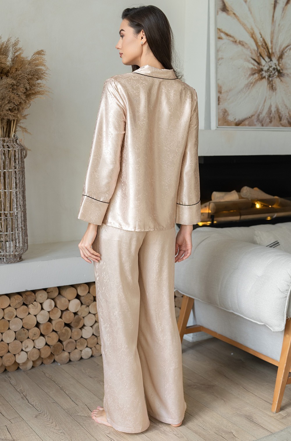 Тип Пижама с брюками Цвет Бежевый Модель Комплект жакет с брюками Материал Полиэстер