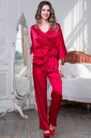 Красная пижама атласная запашной жакет брюки топ Марисия 8586 Mia-Amore имеется в размерах: XS. S. M. L. XL.
