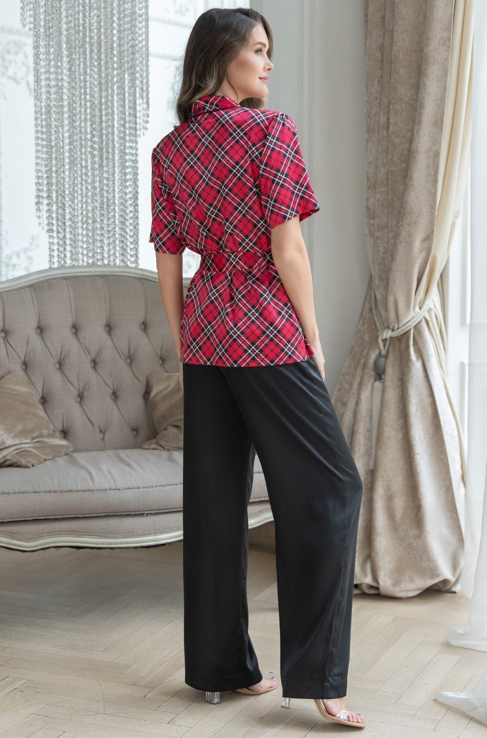 Стильная атласная пижама запашной жакет топ брюки Честер 7379 Mia-Amore имеются в размерах: XS. S. M. L. XL. 2XL. 3XL.