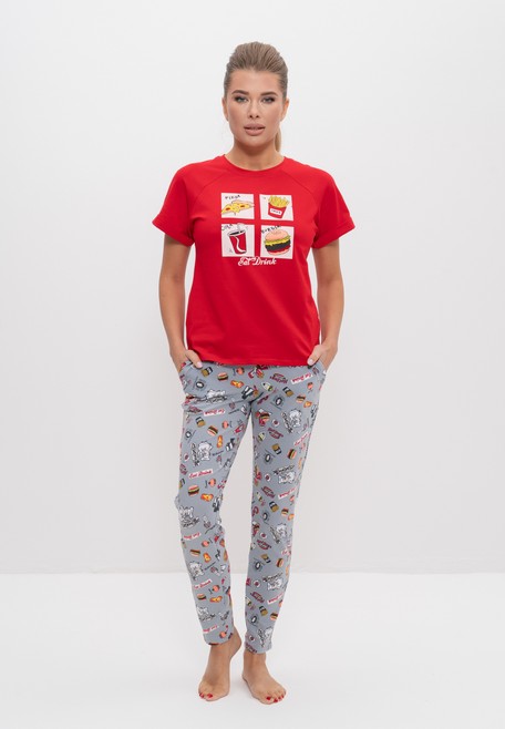 Тип Пижама со штанами Цвет Красный Модель Пижама футболка со штанами Материал Хлопок
