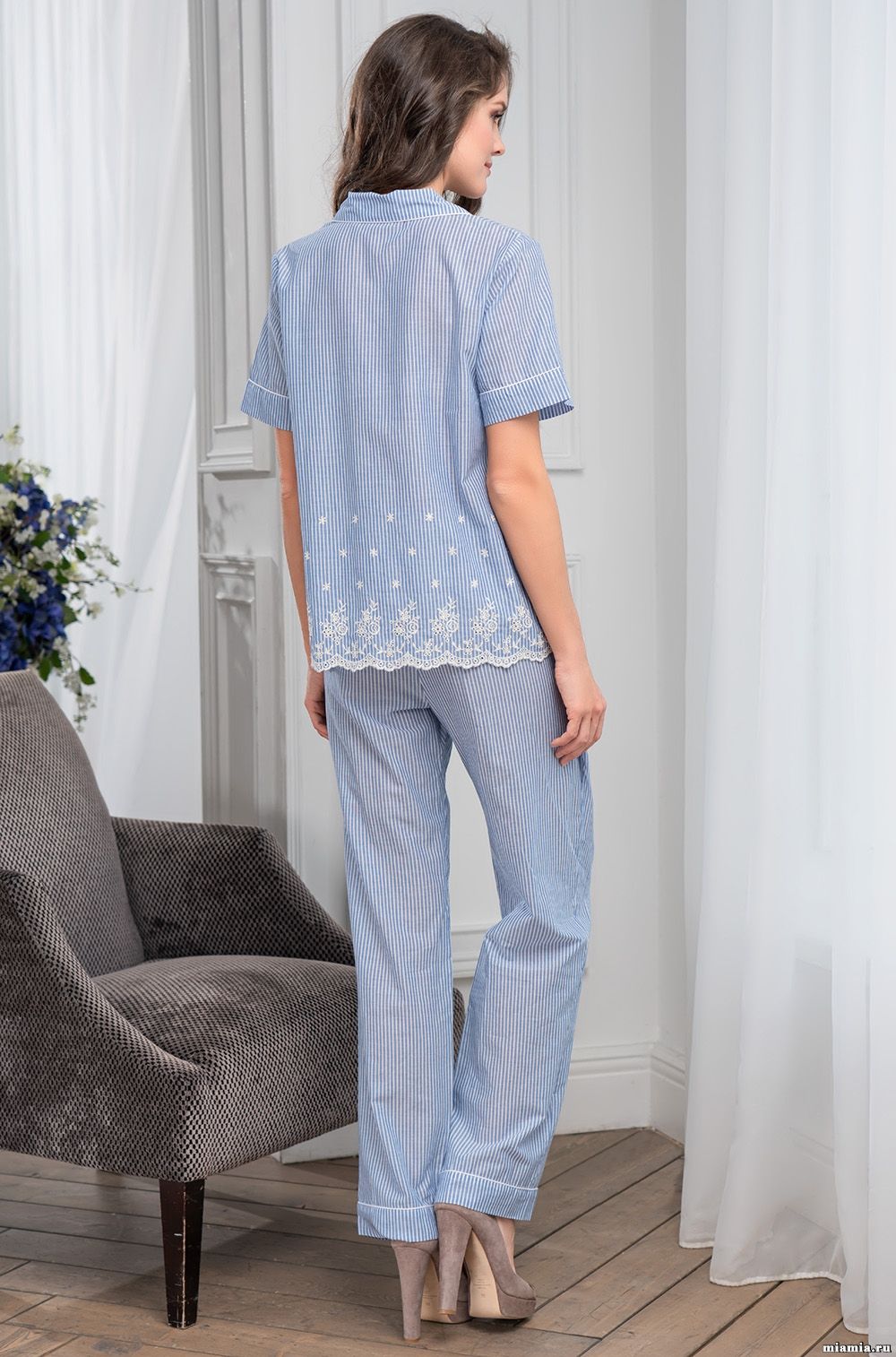Тип Комплект с брюками Цвет Голубой Модель Пижама жакет с брюками Материал Хлопок