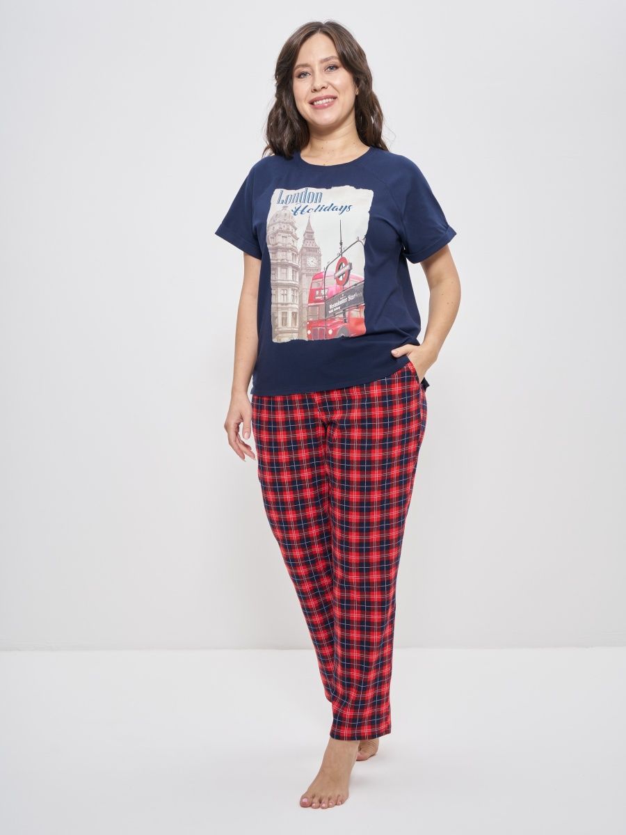 -Пижама женская хлопковая футболка со штанами синий Лондон 1178 Cleo