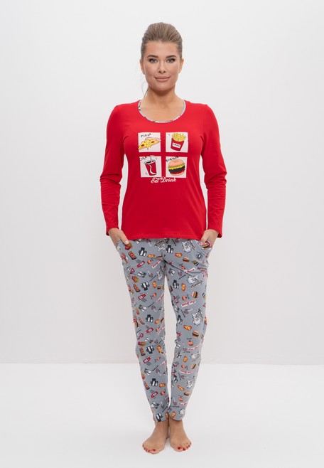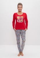 Пижама женская футболка с брюками хлопок Cleo 1159 красный имеется в размерах российский 42. 44. 46. 48. 50. 52.