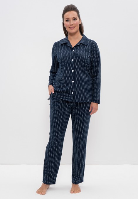 Пижама женская рубашка со штанами хлопок син/пшено 1124 Cleo в размерах: 44. 46. 48. 50. 52. 54. 56. 58. 60. 62.