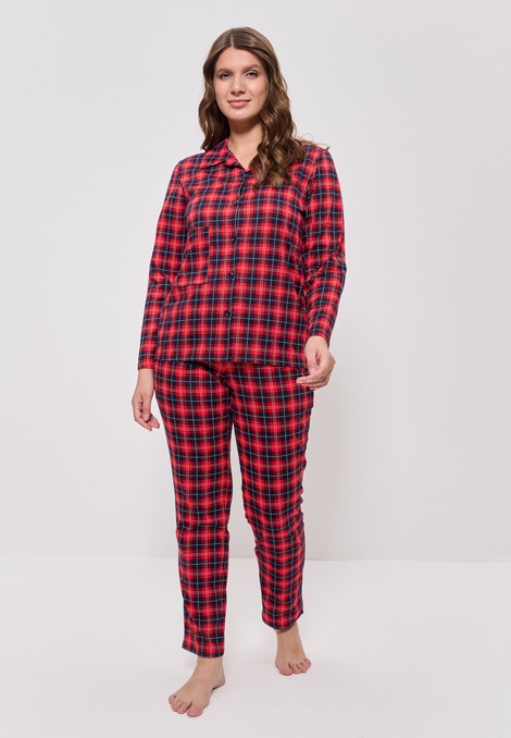 Пижама женская со штанами больших размеров хлопок красн/клетка 1187 Cleo имеется в размерах 48. 50. 52. 54. 56. 58. 60. 62.